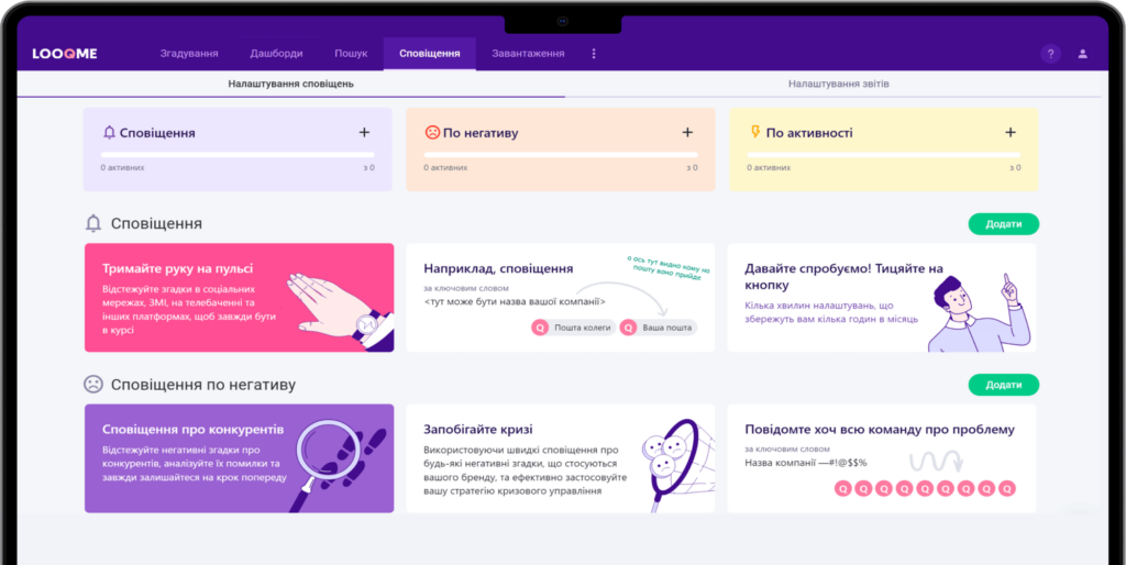 - Використовуйте професійні інструменти. Автоматизовані сервіси на кшталт LOOQME значно спростять процес моніторингу.